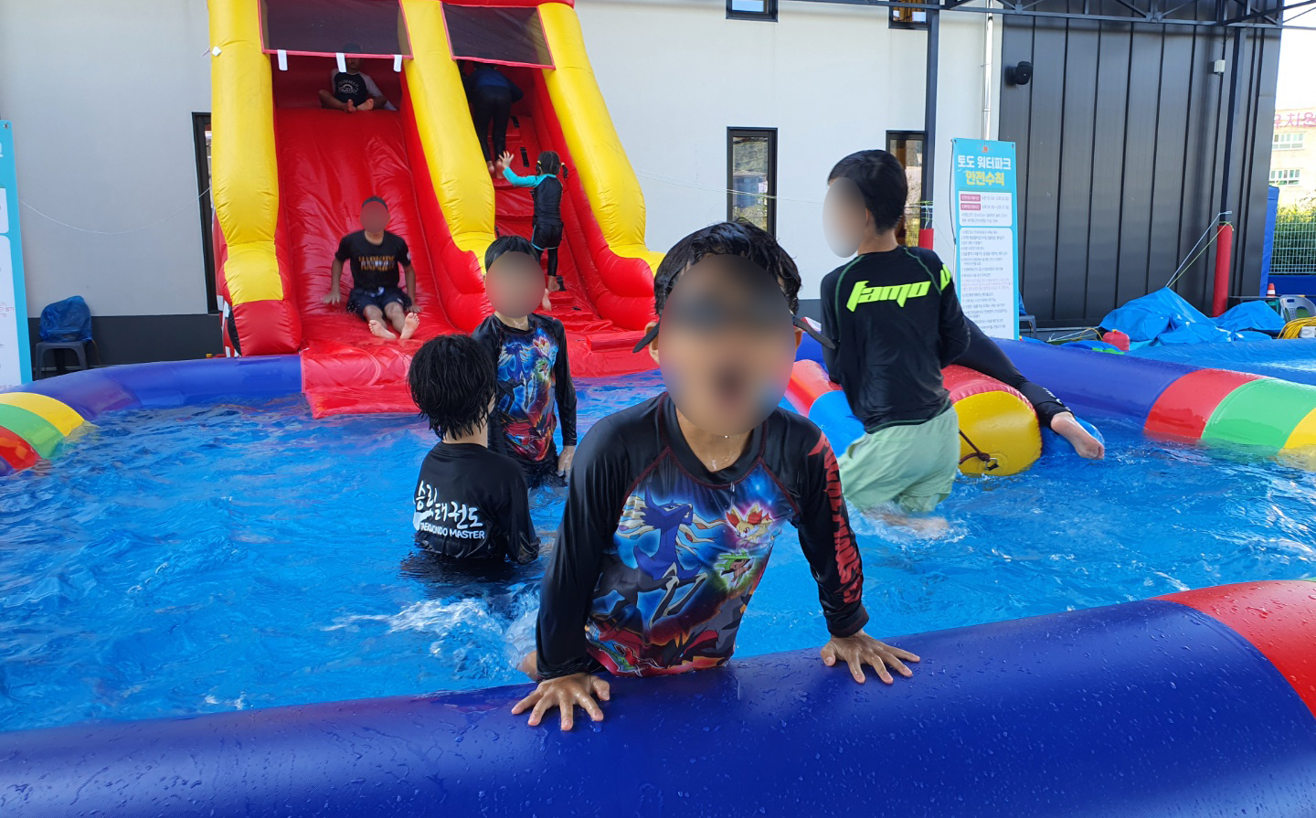 미끄럼틀이 너무 재미난 아이들은 쉴새없이 오르락내리락