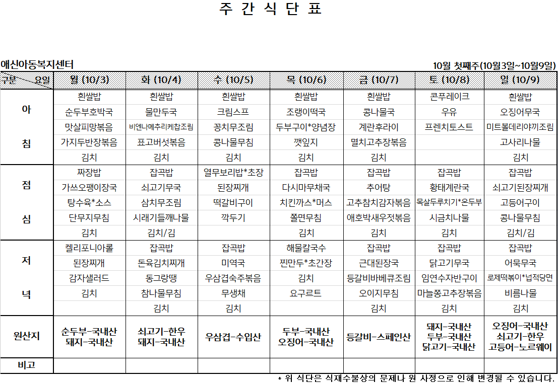'[애신소식] > 주간식단표' 카테고리의 다른 글