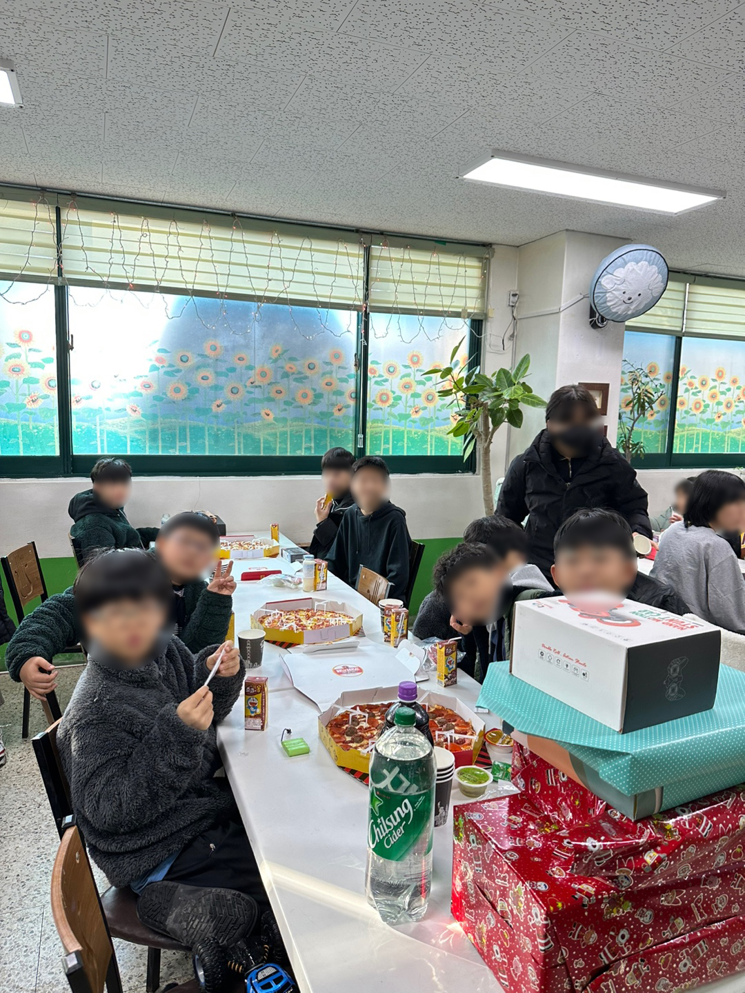크리스마스 파티도 즐기고, 피자도 먹고