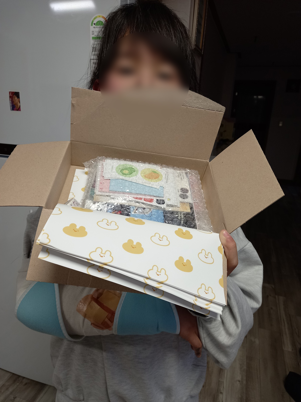 아이들에게 문구 랜덤박스를 선물해주셨습니다.
