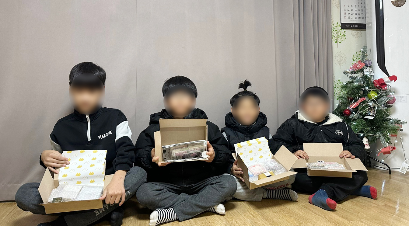 아이들에게 문구 랜덤박스를 선물해주셨습니다.