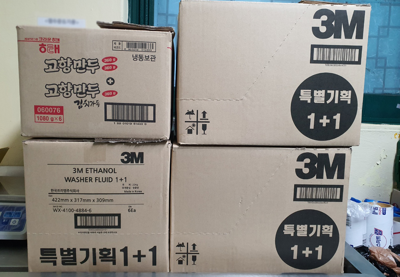 아이들을 위한 과자가 현관문앞에 놓여있었어요.